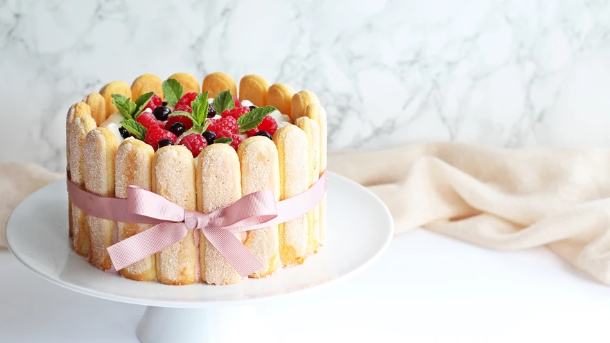 Rikkalikku tarretisetorti tuntakse üle maailma ka Vene šarloti ehk Charlotte russe’i nime all. | foto: Kristi RebaneBiskviitküpsistega ääristatud šarlott on efektse välimusega ja parim just suvel kodumaiste marjadega. Maasikane jogurtikreemitäidis jääb selle retsepti järgi parajalt pehme tekstuuriga ning sobib hästi kokku veidi krõmpsude küpsistega.