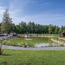 Paar aastat tagasi ohtralt õitsenud vesiroos sai aga mulluse kuuma suvega lehekahjustusi. Varbaidpidi vees kosuvad hundinuiad ja mere äärest toodud kollased võhumõõgad. Muruna kivide vahel rohetav osi pole siiski külvatud, ütleb Ülo: „Osjad kasvasid kivide vahele ise – algul tundusid umbrohuna, aga mis neist ikka ära kitkuda – ilusad on ju!” Künka ümber on istutatud puid, mille suureks kasvamist peab veel aastaid ootama: valgepööke, punaselehelisi pööke, robiiniaid, lehiseid, pärnapuu. Seni tuleb neid põtrade, kitsede ja pikkkõrvade eest hoida ja kaitsta.