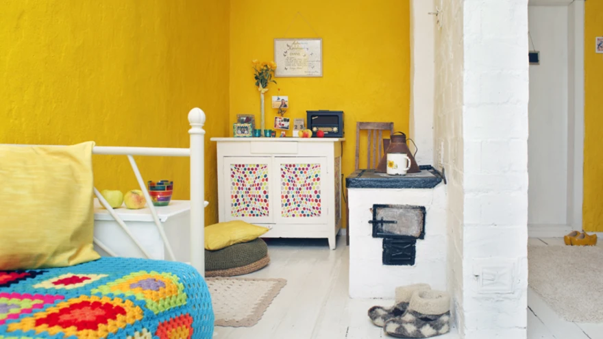 Aasta eest tekkis Dianel tahtmine oma maakodu tuba veidi värskendada. Ta tõdeb, et soovib tihti kodust keskkonda muuta – olgu kardinate või aksessuaaride vahetusega. „Mulle meeldib sirvida sisustusajakirju, kuid tihti tekivad ideed ka poode või veebilehekülgi külastades.” Lisaks käsitööle meeldib sisekujundus Dianele koguni sedavõrd, et ta on oma nõu ja ideid ka tuttavatele jaganud. Oma lemmikkombinatsiooni, valget koos erksate värvidega, kasutab ta julgelt nii riietuses kui kodukeskkonnas. Remonti alustades mõtleski Diane välja värvilahenduse, kuidas varem lillelise tapeediga kaetud seinad ning hall ahi ja põrand pidid sära juurde saama. Plaan oli põrandad ja ahi valgeks värvida ning tervikut kollasega tempida.