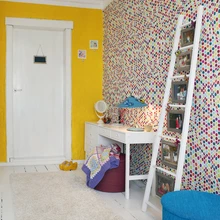 „Kõik sai suurema hoo sisse siis, kui sattusin ehituspoodi ja märkasin esimese asjana värvilist mummulist tapeeti. Kohe oli selge, et selle ma oma tuppa panen, ja ümber ma ennast rääkida ei lasknud. Siis oli ka selge, et tuba peab tulema veidi retrohõnguline,” kirjeldab Diane. Intensiivne erksavärviline mummutapeet seob nüüd ruumi põhivärve ja targu on sellega kaetud vaid ruumi kaks seina.