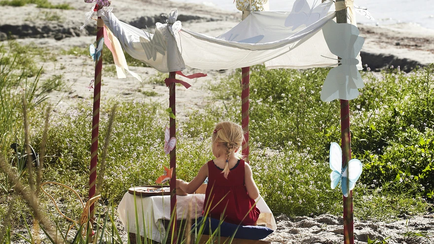 Printsess plaažil | foto: House of Pictures / Kira BrandtNeljast tokist ja kangatükist võib saada printsessiliku varjualuse. Kuumal päeval on endalgi seal hea varjus lebotada, kui tuua juurde mõnus vaip ja padjad.