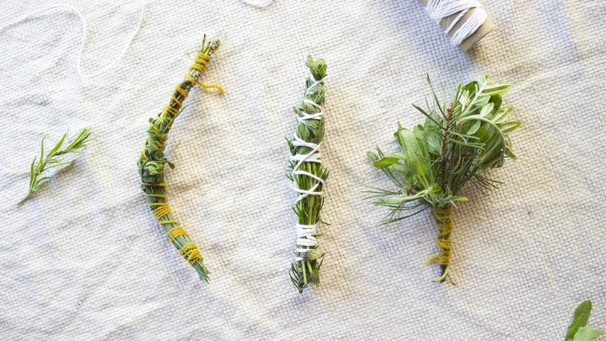 Väikeste sääsepeletuskimpude meisterdamine on sobivalt lihtne ja kiire meisterdus ka lastele! Valmistage neid kohe paras kogus terveks suveks. | foto: Laura VerteSuve sumedatel õhtutel ligi kippuvaid sääski peletavad eemale tugevalõhnalised taimed. Sellised on näiteks salvei, lavendel ja tüümian. Riputa värsked aromaatsed kimbukesed õuealale ja viska mõni kuivanud bukett ka jaanilõkkesse!