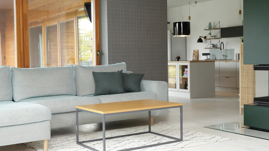 Elamises on kasutatud võimalikult naturaalseid materjale, nende eriliseks lemmikuks on vineer juba ajast, mil nad ostsid oma pooleaastasele tütrele vineerist kiikhobuse. Kui varasemas kodus olid vineerist vaheuksed, köögimööbel ja kapid, siis majas esialgu nad vineeri kasutada ei kavatsenudki. Siis aga kerkis päevakorrale köögimööbel. „See on väga raske teema: milline peaks köögimööbel olema? Ma ei ole väga suur kokkaja, sest korter oli väike ja ämma-äia pool oli vaja kööki jagada,” selgitab Merlyn, kellele jäi paljudest firmadest silma Vineerimaailm. „Nemad teevad mööblit spoonitud vineerist, kus on kenasti vineeritriibud näha.” Merlyni ideedest lähtuvalt nad köögimööbli joonistasidki.