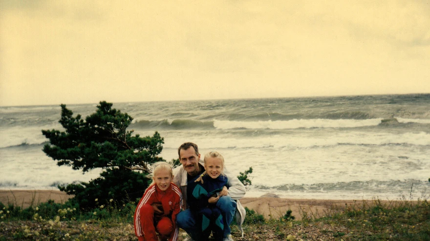Mäsleva mere taustal koos isa Raivoga: «Meie nägudelt on näha, et ega see ilm toona väga soe olnud,» meenutab Caren-Eliis suvist ringreisi Hiiumaale, «see pilt on vist tehtud Ristnas, sest Kassaris selliseid laineid pole.» | foto: erakoguTallinlanna Caren-Eliis Aare (35) meenutab Hiiumaale ette võetud perereise ja sinna suvekodu rajamist suure heldimusega. Nüüd, aastaid hiljem, on naine asunud koos abikaasaga oma lapsepõlvemaadele uut suvemaja ehitama.
