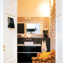 Kohe algul kujutas Maiken ette, mida siinne ruum eriti hästi võimaldaks. Kindlasti soovis ta näha klassikalisemat stiili, toonidest kulda ja musta. | foto: Juta KübarseppMaiken Noore ja Sten Inno kodu pälvis võistlusel „Kodu kauniks 2013“ parima vannitoa preemia, 1000 eurot Gustavsbergilt. Kopli on uus Kalamaja, arvavad Maiken ja Sten, kes kujundasid oma esimese Tallinna-korteri sellel salapärasel poolsaarel suurejooneliselt ja perspektiivitundega.