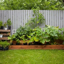 Väike köögiviljaaed leidis koha aiamaja taga. Päike hakkab siia aianurka paistma hommikul kümnest ja kaob nelja paiku pärast lõunat. Kõik kasvab siin kas kastis või potis. Pikk riba on taasviljuvaid maasikaid, soojas nurgas tunnevad end ülihästi kabatšokid ja tomatid. Aianurk varustab peret ka aedsalati, spinati, lehtkapsa, basiiliku, aedtilli, peterselli jm rohelisega.