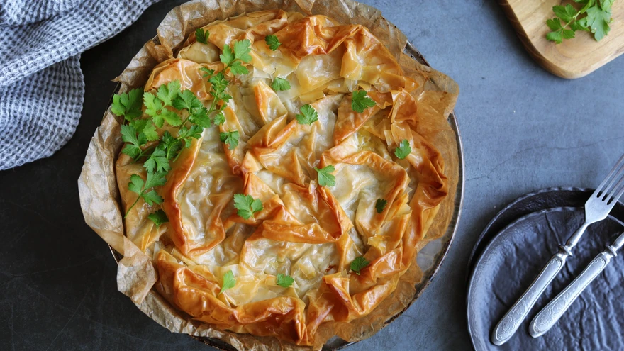 | foto: Kristi RebaneFilotainas on habras ja sellega tuleb kiirelt tegutseda, sest õhu käes kuivavad imeõhukesed tainalehed kiirelt, muutudes rabedaks. See-eest vajab taina pirukaks vormimine vaid mõne lihtsa liigutuse, pealekauba näeb krõbe küpsetis laual tõeliselt efektne välja.