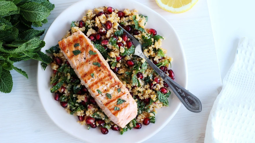 Vaid viis koostisosa: grillitud lõhe bulgurisalatiga