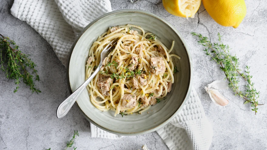 VAID VIIS KOOSTISOSA: sidruni ja tüümianiga tuunikalapasta