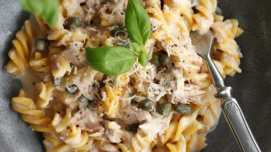 Vaid viis koostisosa: tuunikala-kapparipasta valges koorekastmes
