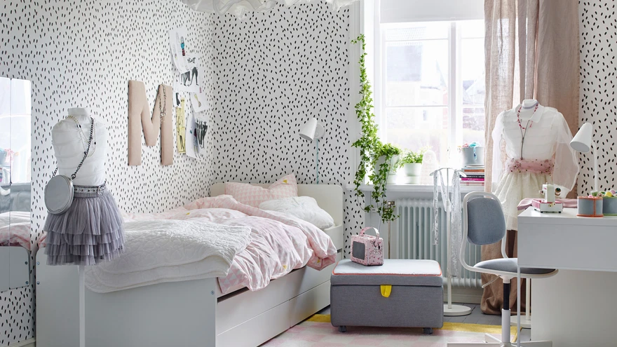 Ehkki suured asjad – laud, voodi, riiulid – on väga olulised, siis toast teevad oma toa hoopis need väikesed. Laualamp, pildid ja plakatid seintel, mõnus voodipesu, kardinad või ruloo, seinakell, mis võiks olla laua taga istudes nähtav. Las need valikud teeb laps ise, vajaduse korral vanema abi ja suunamisega. Kui tuba on muidu tagasihoidlikes toonides, siis detailide värvidest peaks piisama, et luua lapsele oma ruum, kus tal on mugav ja hea. Lisaks on väiksemaid asju kerge tulevikus välja vahetada, kui maitse või vajadused peaksid muutuma.