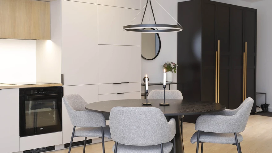 "Kodu kauniks 2022" finalist. | foto: Juta KübarseppTühjast tavatu kujuga korterikarbist kujundasid Annett ja Tristan Peterson maitseka ning stiilse nutikodu, kus iga pisidetailgi on põhjalikult kaalutletud.