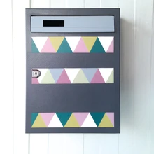 6. Tee mustri tarvis kavand ning kanna see postkastile. Selle postkasti puhul soovisime, et muster oleks silmatorkav, kuid ei riivaks silma, seetõttu valisime tumehalli põhitooni, millelt paistab hästi välja ka mahedamate toonidega tehtud muster.