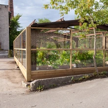 Kõigi peenrakastid ei mahtunudki rajatavasse kasvuhoonesse ära ja osa pidi hakkama tegutsema õues. Aga tegelikult olid karkassi all olevad kastid esimesel suvel samuti õuekastid, sest klaaside panek võttis päris palju aega. Ümber metallkarkassi tuli ju kõigepealt ehitada puidust raamistik, millele klaasid kinnitada. Nii saigi triiphoone endale seinad alles augusti algul ja kihtplastist katuse veelgi hiljem.