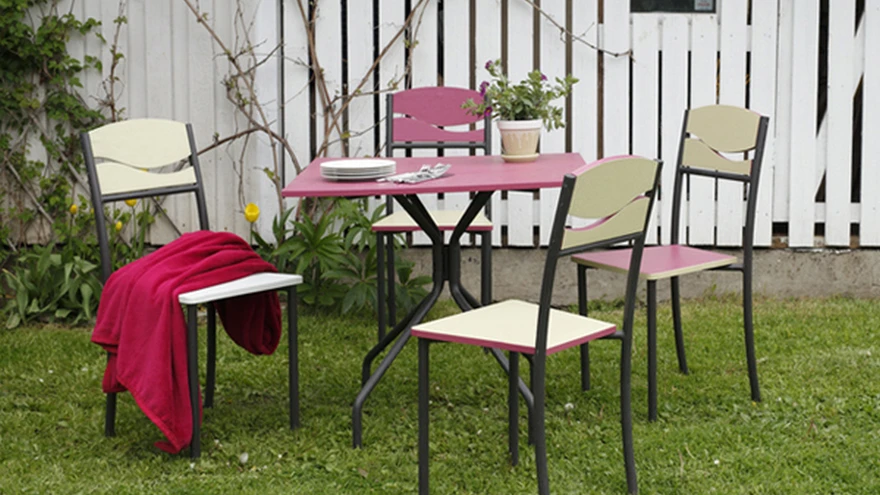 Et rõhutada toolide erikujulisi osi, said vineerosade servad värvitud külgedest erinevat tooni. Selline töö vajab natuke rohkem täpsust, aega ning korralikke töövahendeid, kuid tulemus on seda väärt. Aiamööbli värvitoonide valimisel tasuks lähtuda kindlasti ka maja fassaadist ja teistest olulistest objektidest aias, et mööbel õueruumis võõrkehana ei mõjuks.