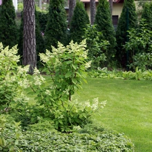 Kena heleda laigu tekitab kollakasroheliste lehtedega hollandi jalakas. Pere ootab põnevusega, millal hakkab õitsema jaapani kirsipuu. Pärnapuu istutati värava kõrvale aga Aavo soovil, kellele pärnad väga meeldivad.