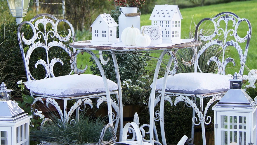 Shabby-chic stiil terrassil. | foto: Hilda Hornbachner / living4mediaValge joonistub aina enam pruune toone võtvas sügises hästi esile, et siis hiljem lumega romantiliselt ühte sulada.